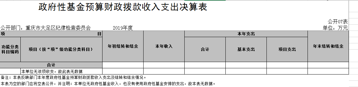 4.结转结余情况。2019年度年末结转和结余0.00万元,较上年决算数增加0.00万元。