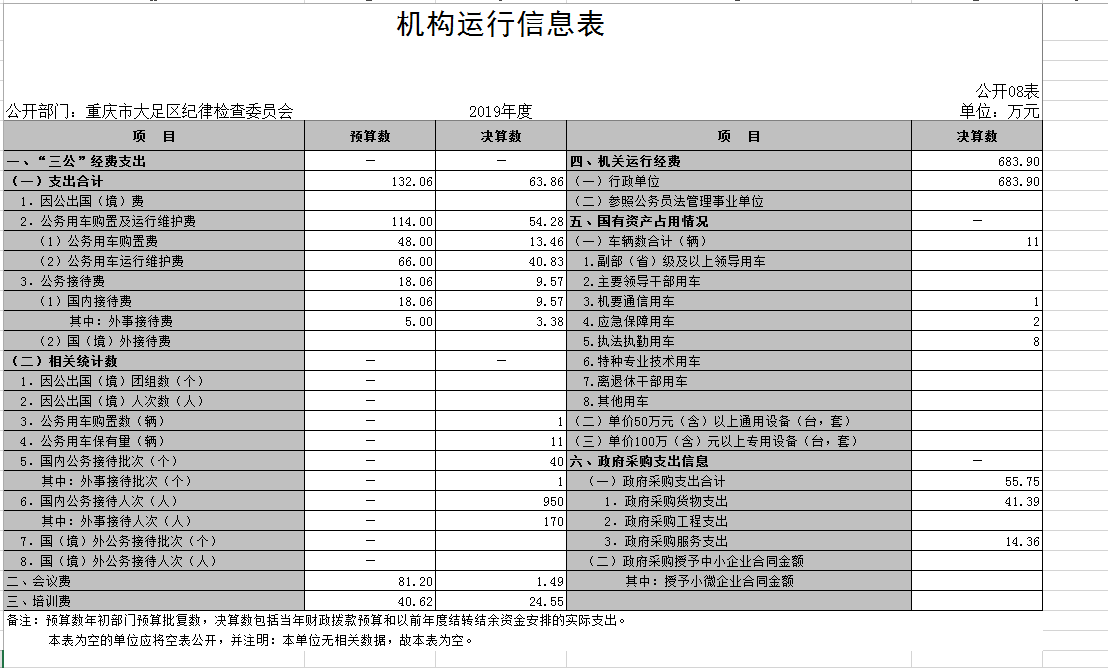 从预算单位构成看,纳入本部门2019年度决算编制的预算单位主要包括机关本级、下属事业单位大足区廉政教育管理中心和代管的区委巡察办。